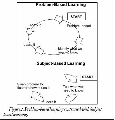To represent problem-based learning, the article presents the following diagram: Note how the better managed process (top) is literally circumscribed--made into a tight circle. Decentering the classroom is a risky business for students and teachers and so it makes sense that faculty feel compelled to manage and schematize the ways in which learners become engaged. It is important, however, not to limit our understanding of student engagement by focusing soely on what the teacher does to choregraph and assess learning. Engagement should have something to do with fun, with play. As John Dewey writes in Experieince and Education: