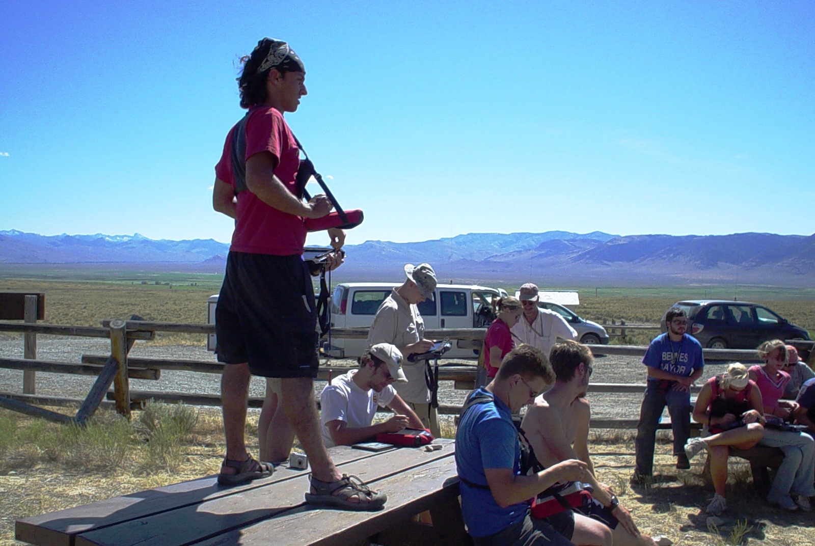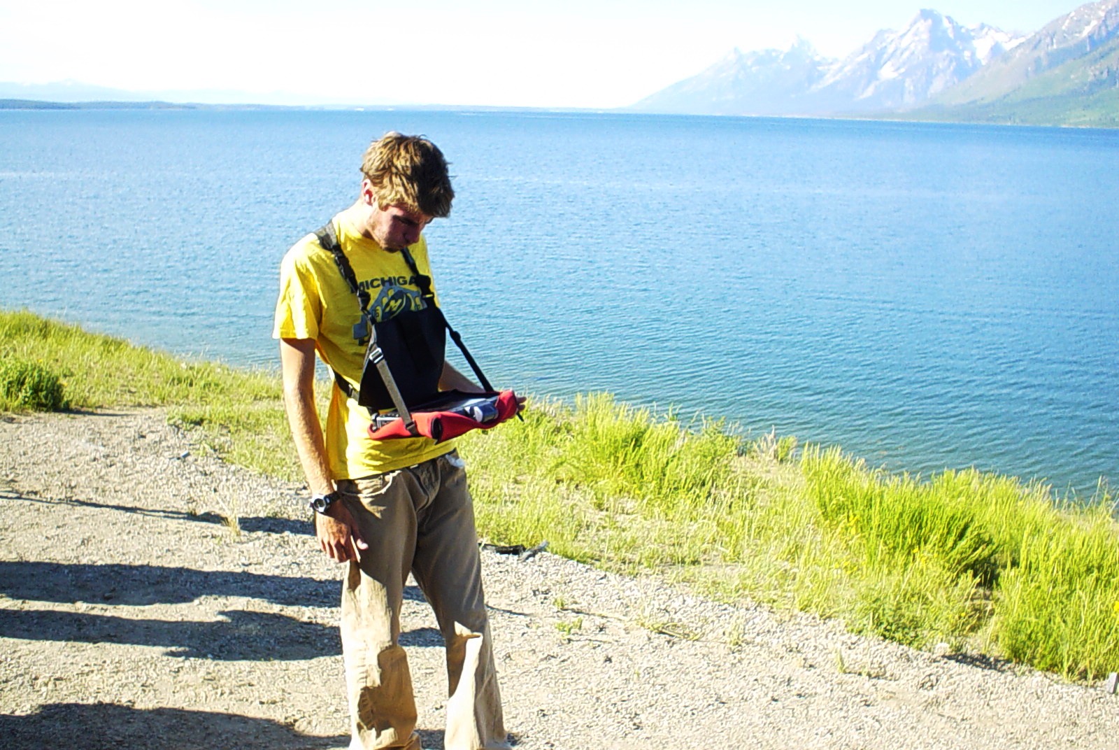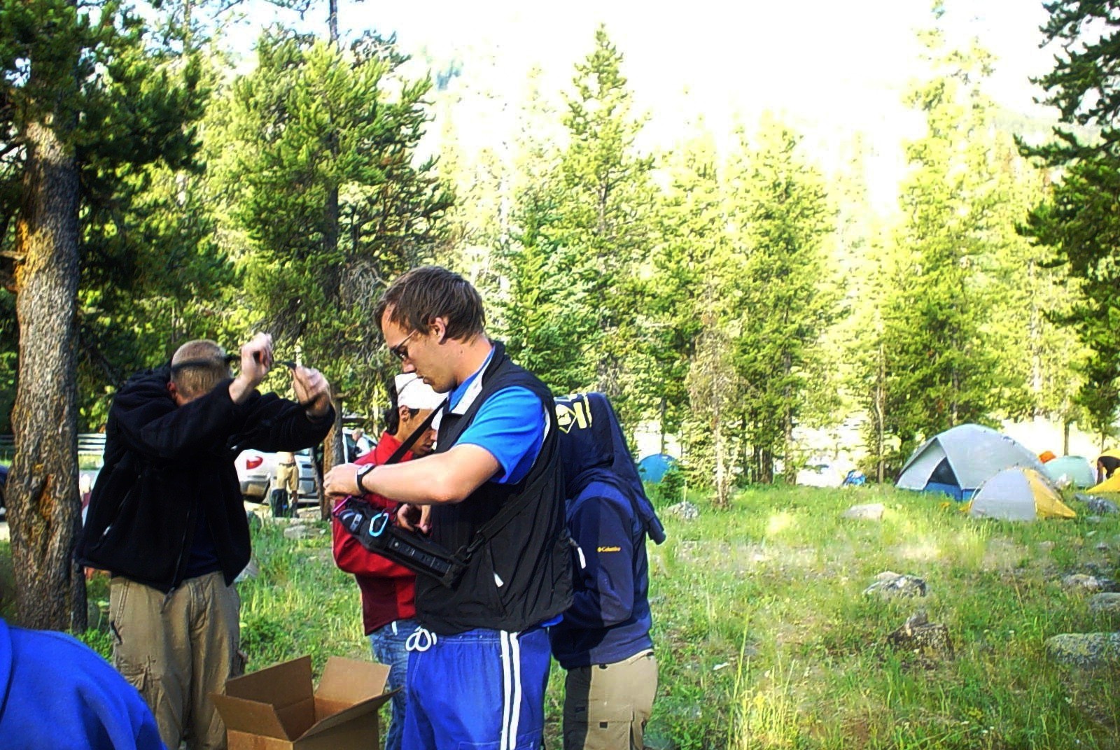 On this second trip, just like the first, my data collection consisted of a series of day-long observations of students using their Geopads, numerous digital photographs, and several informal interviews with students and faculty during hikes in the mountains of Grand Teton and Yellowstone National Parks. However, I had much closer contact with these students, as we spent 24 hours a day together for 8 days. On the second day of our travels, Professor Niemi of the University of Michigan Geology Department distributed the Geopads and harnesses for the first time to students while we were breaking camp and loading up the travel vans.
