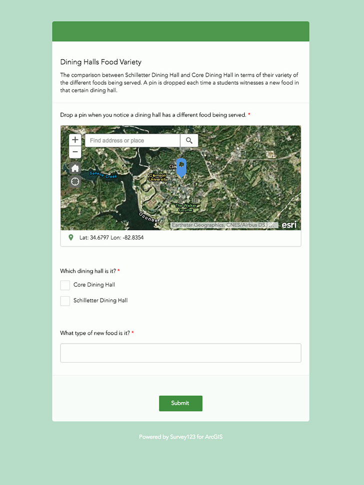 Students at Clemson regularly complain about a lack of food choices in our dining halls. This survey tries to determine which dining hall has more food options.