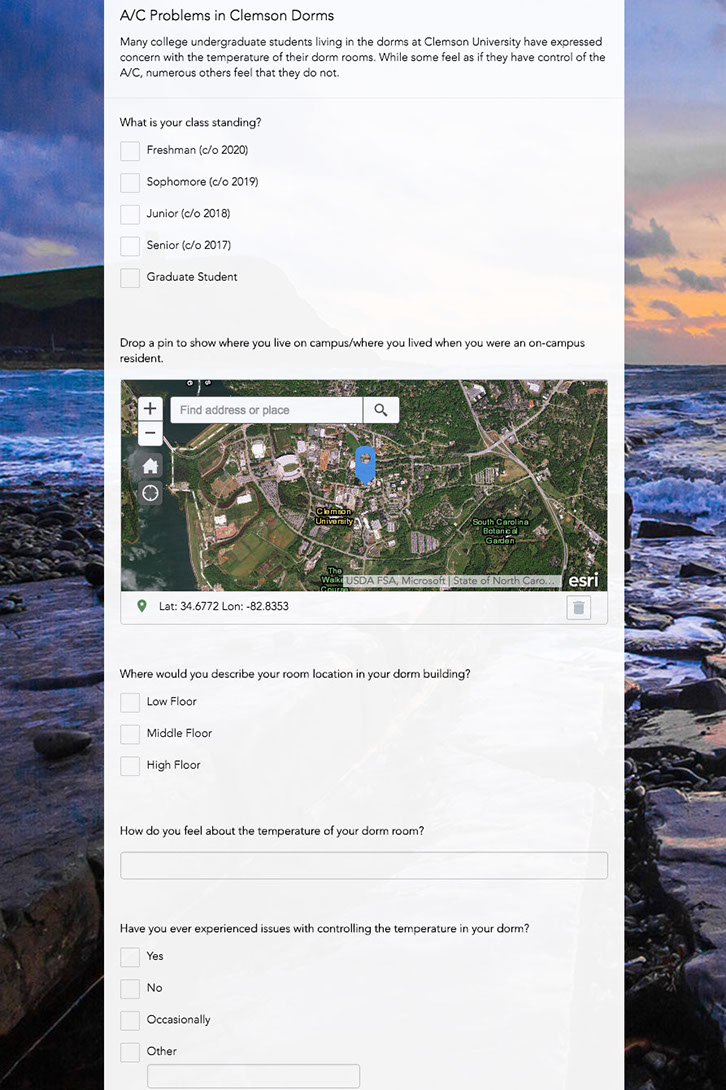 Many students move into student housing to find uncomfortable room temperatures and sealed windows. This survey tries to determine where climate control is a problem in the Clemson dorms.