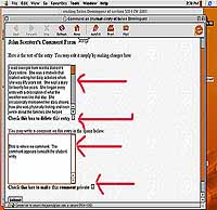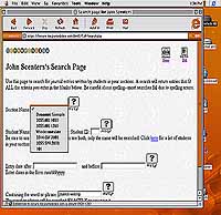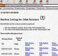 Teachers can edit or comment (inter- or intratextually) on any student entry (Pictures H and I). Teachers can quickly group students by interest using the "Search Student Journals" feature (Picture E). TJP will generate a list of students who have expressed an interest in a particular topic, listing name, date and time of entry, as well as generating active comment links in each listing for teachers to correspond with students. This feature is ideal for forming collaborative teams. "Display Word Counts" allows teachers to enter precise time intervals, down to the minute, and then lists the entire class and how much they have written in that particular interval (Picture F). Teachers can add their syllaweb to TJP so that when their students login, they also see the syllaweb. Or instead of a syllaweb, teachers can also use the power of the Internet by linking timely readings from Web resources such as Time.com or employ online novels or texts (See Student Features, Picture E; Single Journal, Picture A).