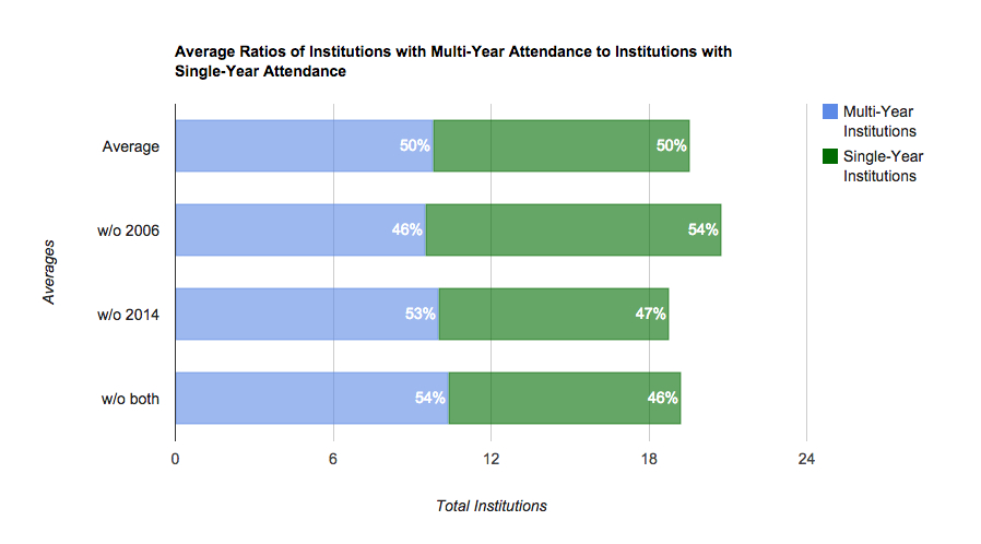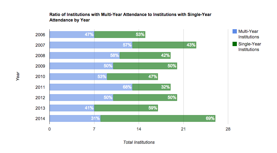 multi-year attendance (that is, institutions that sent participants to DMAC for more