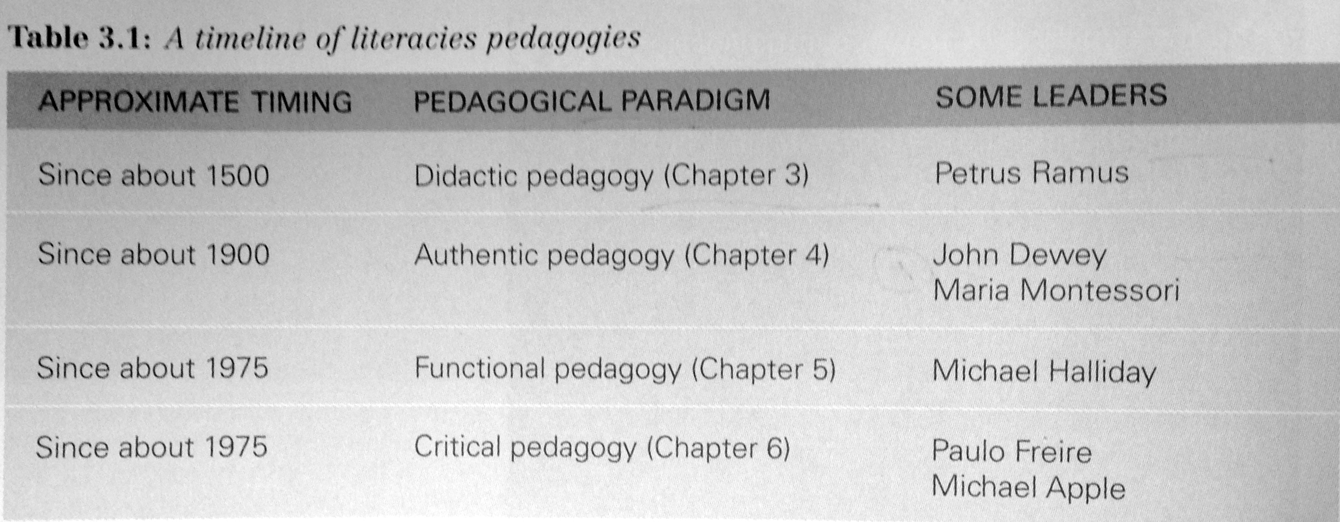 This part of the book contains chapters 3-6. Each of the four major paradigms (didactic, authentic, functional, and critical) are outlined and explored in depth an individual chapter of the book.