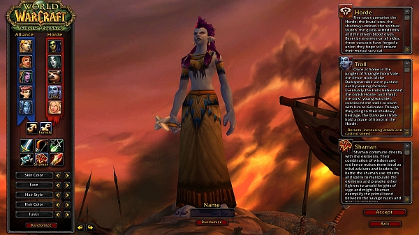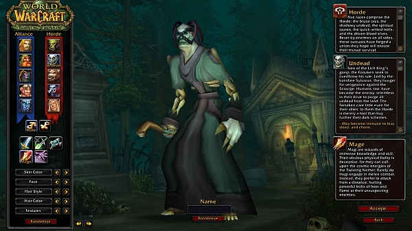 First released in 2004, Blizzard Entertainment's World of Warcraft or WoW is a massively multiplayer online role-playing game (MMORPG) now with over 10 million players worldwide. For a nominal fee to purchase the software and to subscribe to the game, WoW allows a player to create and control a player character (PC) represented by a fully-rendered avatar (also lovingly called a toon) in a high-fantasy game world where they can explore cities and landscape, participate in quests and battleground events, and fight and interact with computer-controlled non-player characters (NPCs) as well as other players. The WoW official website describes the game: "World of Warcraft enables thousands of players to come together online and battle against the world and each other. Players from across the globe can leave the real world behind and undertake grand quests and heroic exploits in a land of fantastic adventure." It is the coming together of "thousands of players" simultaneously in a vast, persistent game world framed by and filled with stories that makes an MMORPG like World of Warcraft different than other computer and console video games. Constance Steinkuehler (2008) describes games like WoW as "persistent social and material worlds loosely structured by open-ended (fantasy) narratives, where players are largely free to do as they please" (p. 10) with surprisingly rich virtual social, political, historical, geographical, and material economies. World of Warcraft is set in the fantasy world of Azeroth, first introduced in Blizzard's 1994 real-time simulation computer game Warcraft: Orcs and Humans. The WoW website says, "World of Warcraft draws heavily upon the lore of the Warcraft universe. Long-time fans of the Warcraft games are finally able to step into the world from a player's perspective, and experience the universe firsthand. People, places, and units from the strategy games are brought to life in World of Warcraft." Players can create a toon from one of ten playable races: Dwarves, Gnomes, Humans, Night Elves, Draenei, Orcs, Tauren, Trolls, Undead, or Blood Elves. According to the WoW website, "Each of these races has unique racial traits and certain playable classes available to them. These racial traits and class options help them to accomplish their goals in the world." Players can choose from nine playable classes: Druid, Hunter, Mage, Paladin, Priest, Rogue, Shaman, Warlock, or Warrior. Each class is differentiated by what skills, abilities, and spells they possess. Once a character has been created, named, and dropped into the game world, the player can take advantage of "multiple professions each with unique benefits, thousands of quests to undertake and complete, multiple modes of transportation, [and an] extensive and elaborate storyline." |